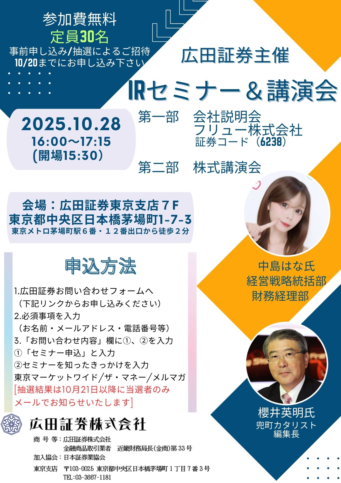 - 10月28日(火)IRセミナー&株式講演会開催のお知らせ<東京支店>