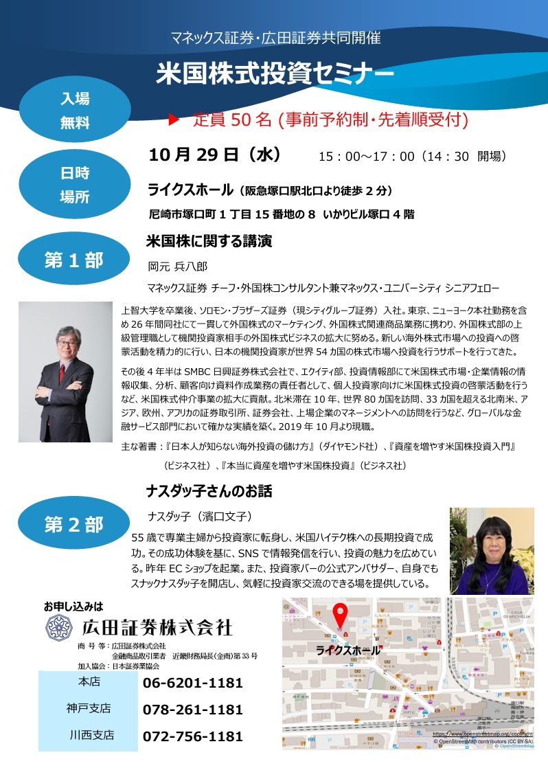 10月29日(水)米国株式投資セミナー開催のお知らせ
