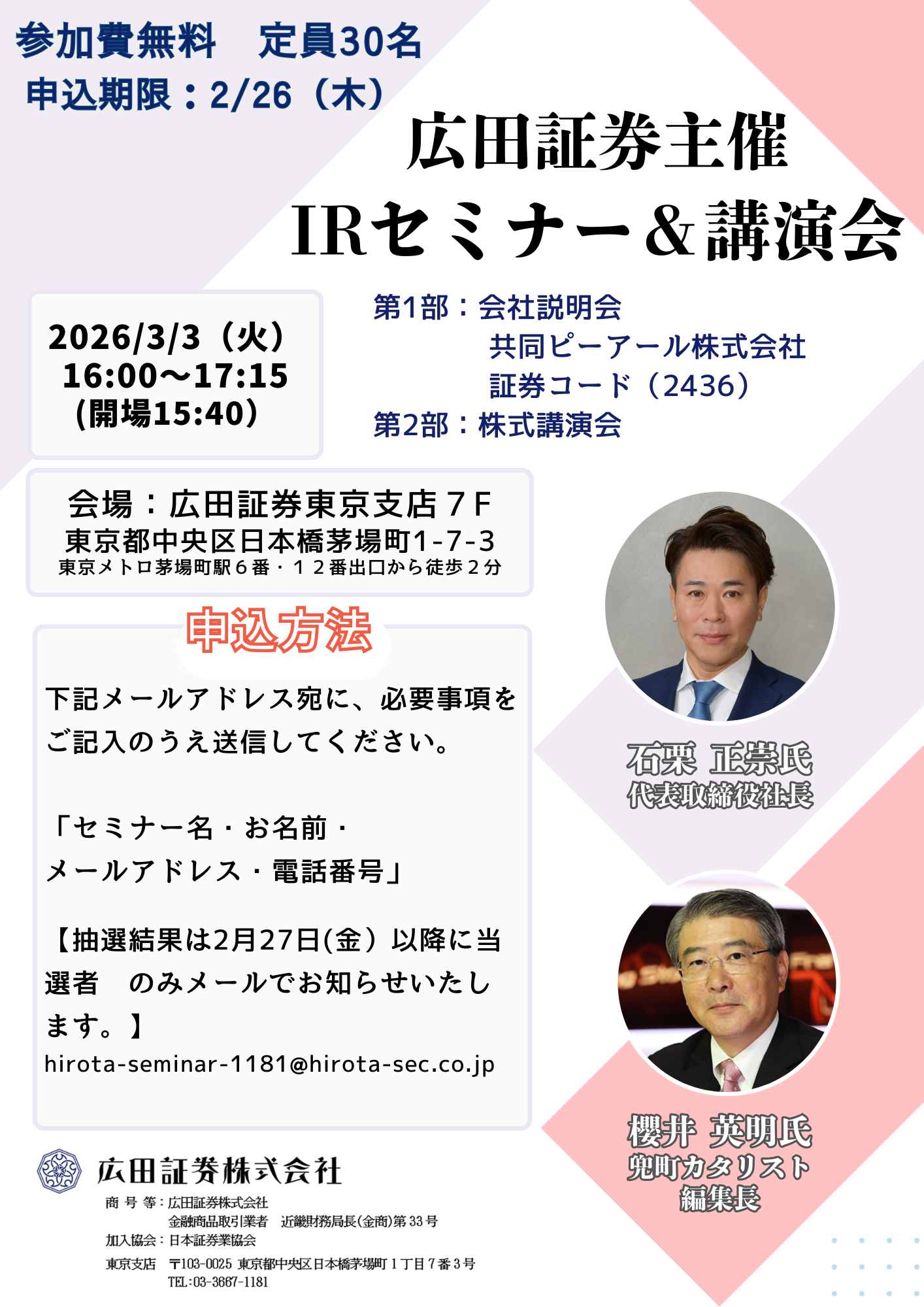 - 3月3日(火)IRセミナー&株式講演会開催のお知らせ<東京支店>